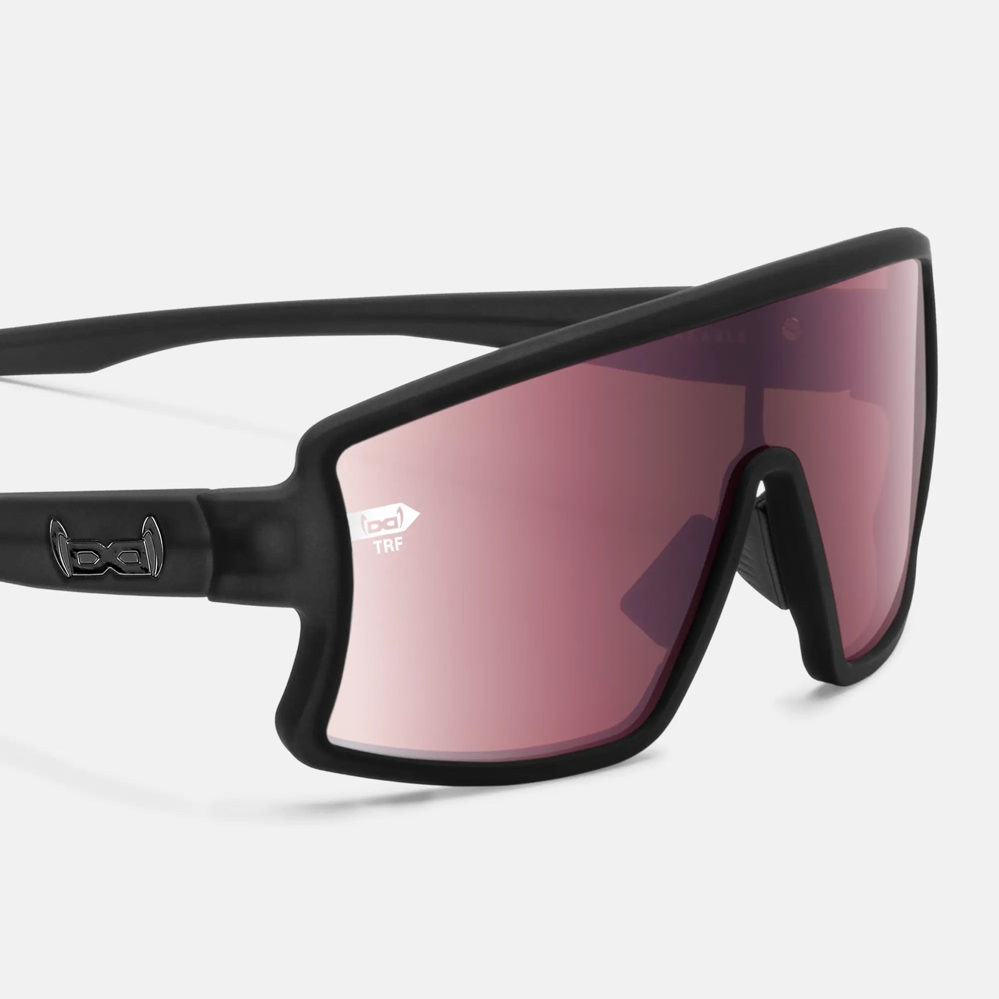 Allwetter-Gläser mit Power-Kontrast, dank der man jede Breitensportart bei bester Sicht genießen kann. Selbstständige Anpassung an die UV-Strahlung, von rosé im hellsten bis deep purple mit Silver-Spiegel im dunkelsten Zustand.