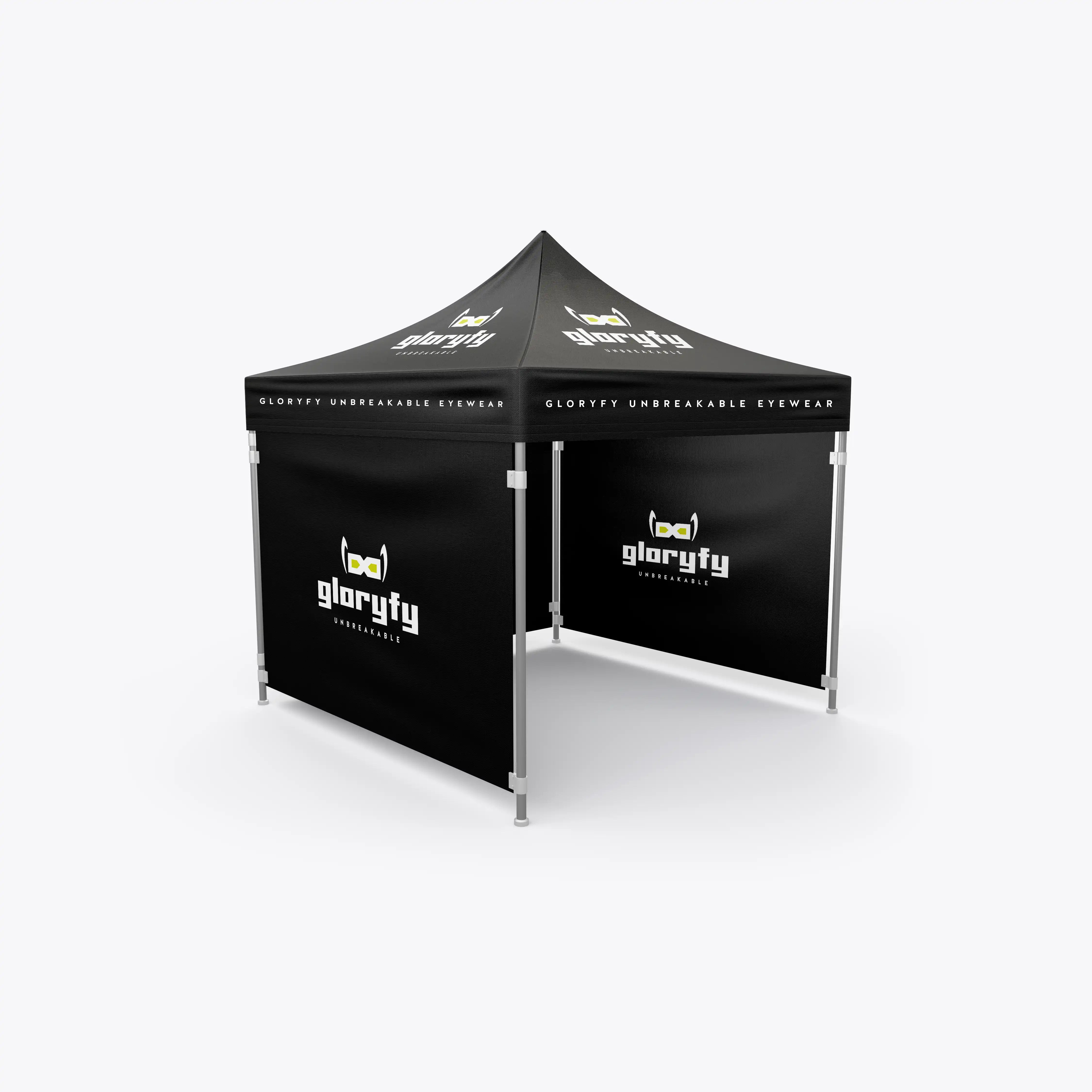 Setzen Sie auf maximale Aufmerksamkeit: Das gloryfy A-Tent mit drei Außenwänden ist ein echter Blickfang und unterstreicht den Auftritt Ihrer Veranstaltung.